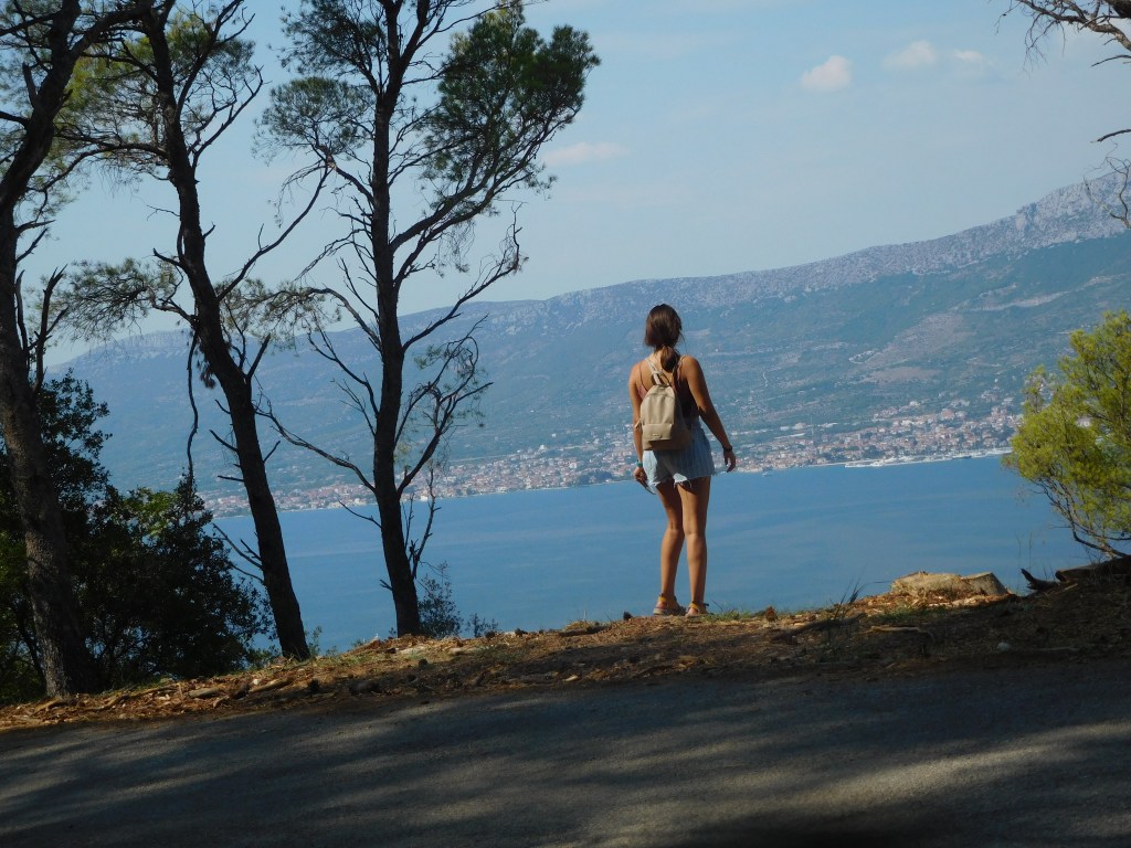 En las fotos anteriores muestro el tipo de camino que hay que seguir, el cual es muy sencillo y, si quieres no sentirte perdido, con mirar Google Maps o un mapa físico te vale para guiarte, ya que esos mismos caminos aparecen en dicha app. Básicamente tan solo hay que seguir el sendero. Por el camino puedes encontrar una enorme cruz de piedra, la bandera de Croacia y pequeñas iglesias cerradas, ¡además de las preciosas vistas! ¡Y recuerda hidratarte a menudo y protegerte del sol y el calor, súper importante para pasar varias horas paseando por aquí!
