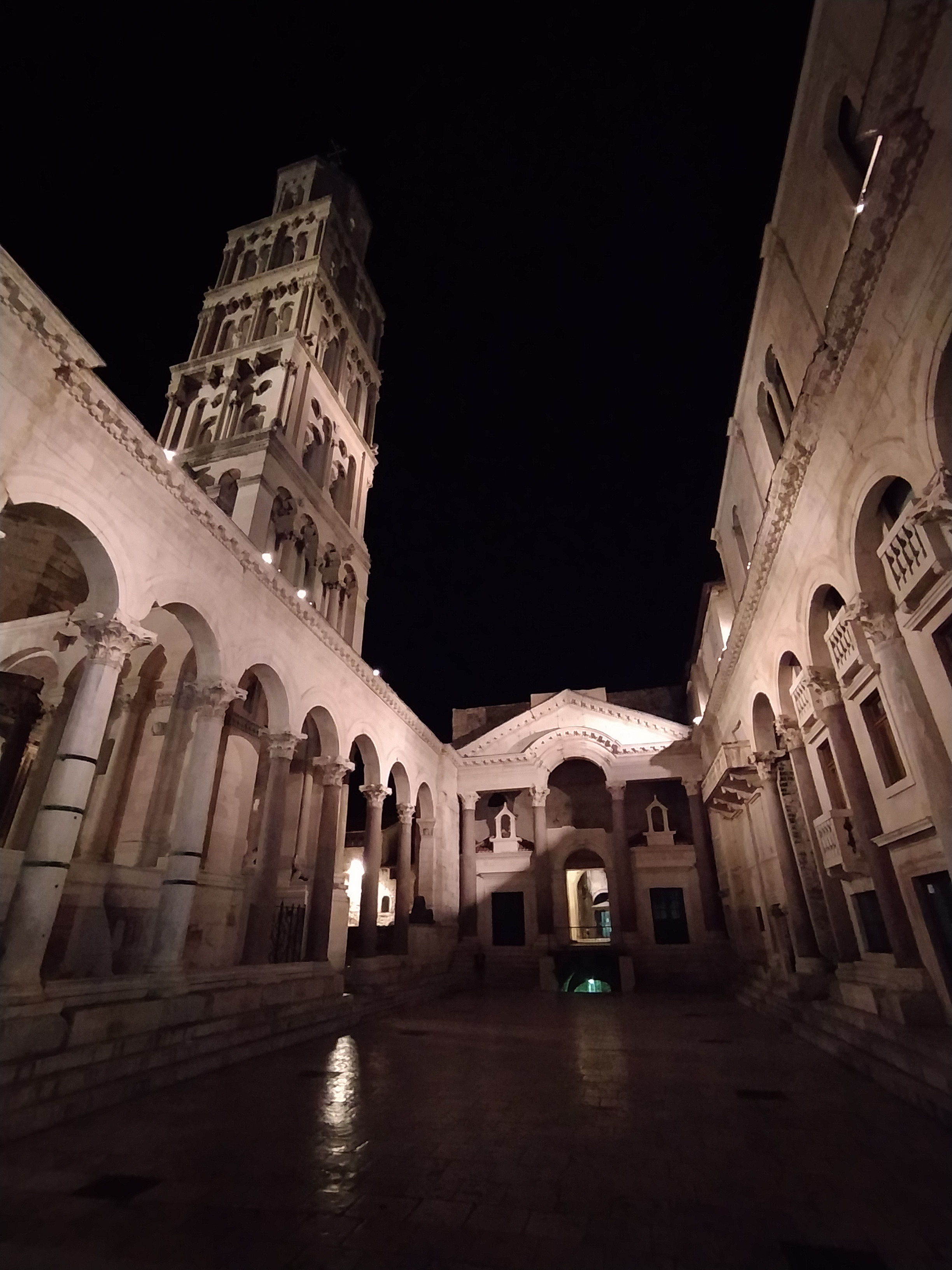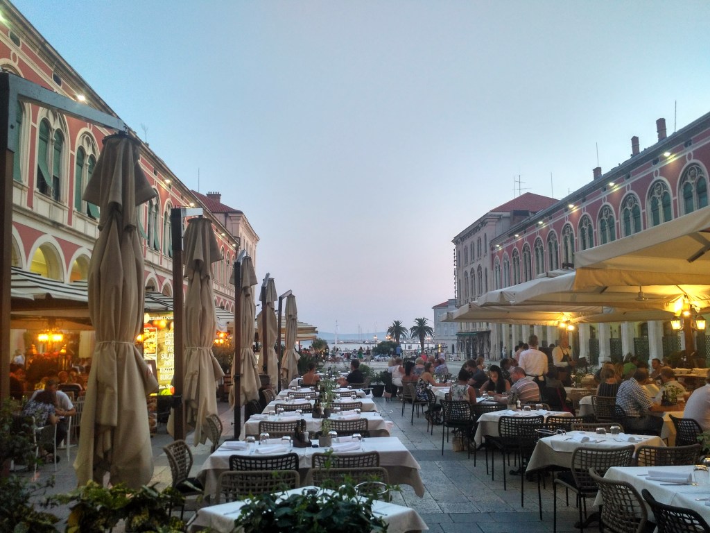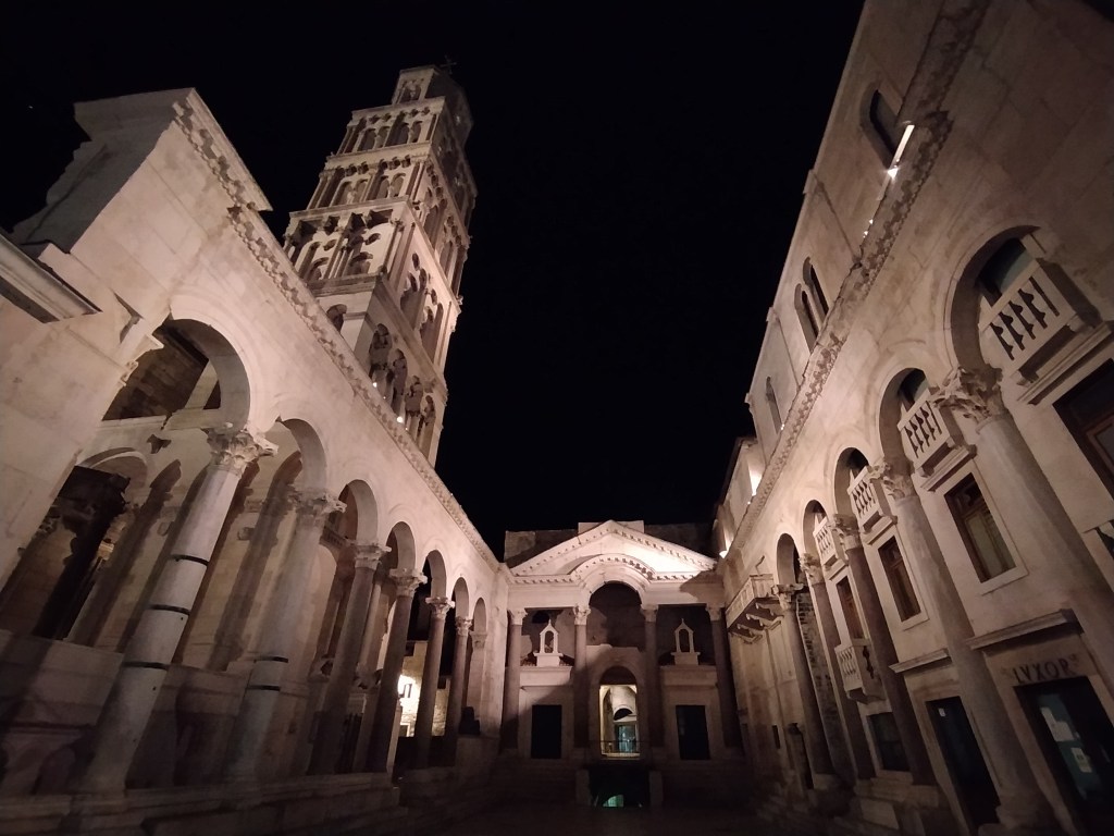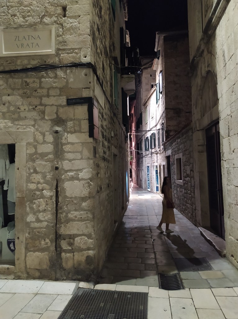 ¡Pasea de noche! Tras la hora de cenar (especialmente a partir de las once o doce de la noche) las calles se vacían completamente y es el mejor momento para disfrutar del centro de la ciudad. Por la mañana está tan concurrida (de verdad, hay gente por todos lados, se nota que es una ciudad súper turística) que yo decidí no hacerme ninguna foto, pero de noche… ¡Tienes todo el Palacio y toda la calle para ti! Es así como me hice fotos en Riva, el Palacio de Diocleciano, las plazas, las calles…