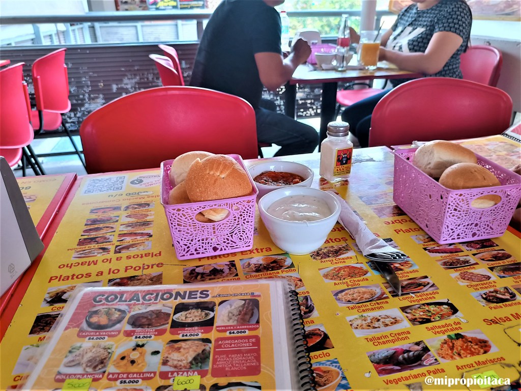 Yo lo probé en uno de los restaurantes (restoranes, como dicen en Chile) de la planta de arriba del mercado de abastos Tirso de Molina, en Recoleta, Santiago. El menú incluía una sopa, ensalada tradicional y un entrante de pan amasado para mojar en varias salsas. El precio fue aproximadamente de unos $7.000 (8€) ¡y te aseguro que daba para dos personas! Fui a comer allá con el grupo del free tour que había realizado justo antes y todos acabamos pidiendo que nos pusieran la otra mitad para llevar.
