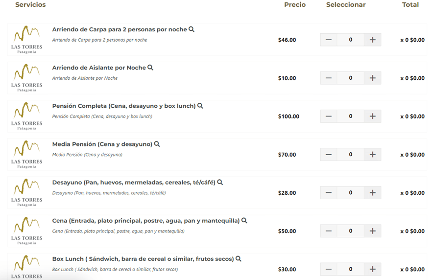 A esto hay que añadirle (el programa de Booking Patagonia Travel te lo añade automáticamente después cuando le das a continuar con la reserva), el bus ($12.000), la entrada al parque (49 USD) y su cargo por servicio (60 USD, algún dinero tendrán que ganar, claro) si reservas con esta web. Y aparte, allí mismo, tienes que pagar en efectivo el ticket del ferry ($25.000) y el shuttle bus de Laguna Amarga ($3.000).