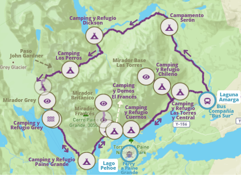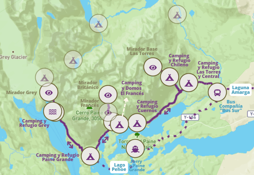 ¡Piensa bien lo que estás haciendo y dónde empieza y termina tu ruta! Sé que es difícil si no conoces Torres del Paine, yo no entendía nada de lo que reservaba, por eso tuve que dedicar unos días a leer bien las etapas y localizar cada lugar en el Parque. Y te aconsejo que lo hagas mínimamente, pues muchos turistas se montan en el bus y luego no saben para dónde van exactamente ni dónde tienen que bajarse.