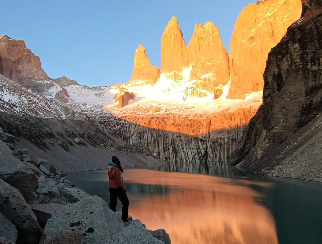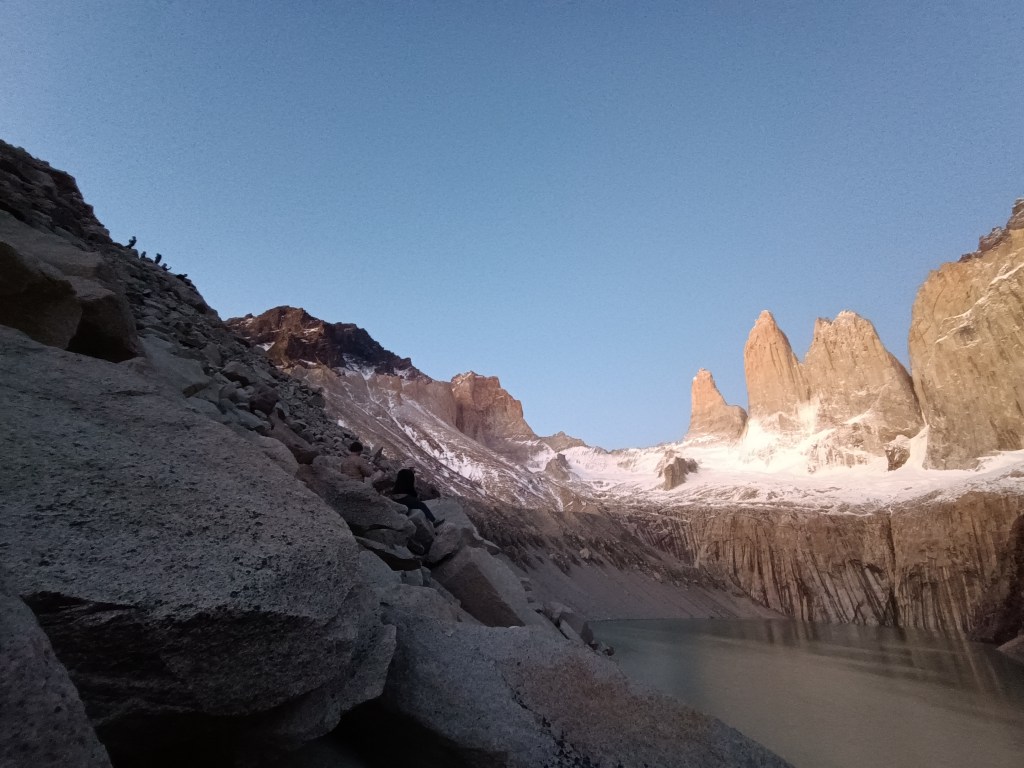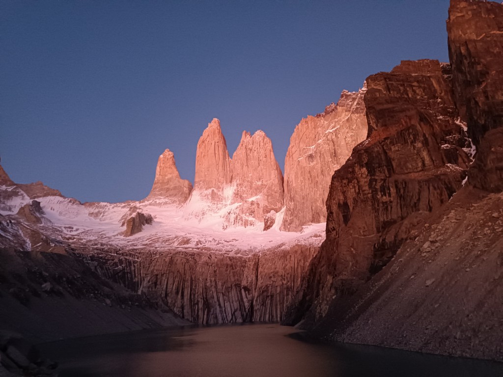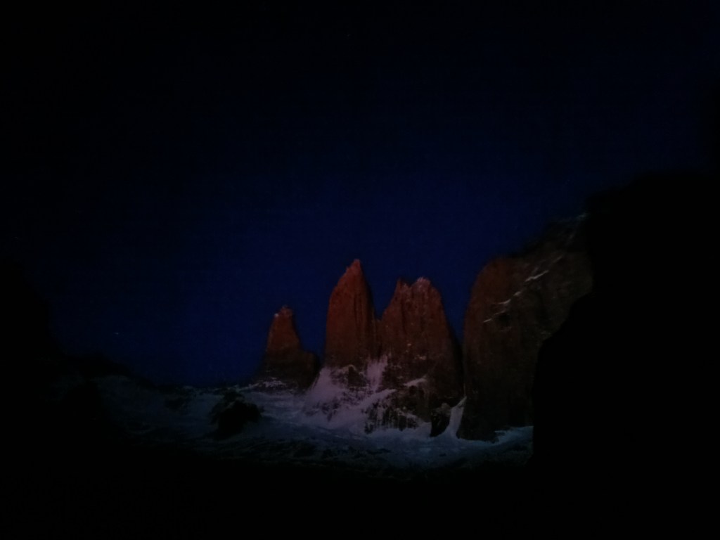 Además, muchos de los que nos quedamos en Chileno aprovechamos para subir a ver el amanecer en Las Torres. ¡Una experiencia preciosa! Y desde luego muy íntima, ya que tienes el Parque para ti; luego más entrada la mañana el Parque se peta (se llena) de gente que va a hacer la excursión de 1 día. Eso sí, algunos de los que se quedan en Central me sorprendieron apareciendo allí arriba también para el amanecer. ¡Tuvieron que madrugar y caminar en la noche dos horas más (si no recuerdo mal)! Tienen toda mi admiración. Así que posible también es, aunque desde luego más incómodo.